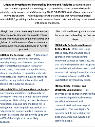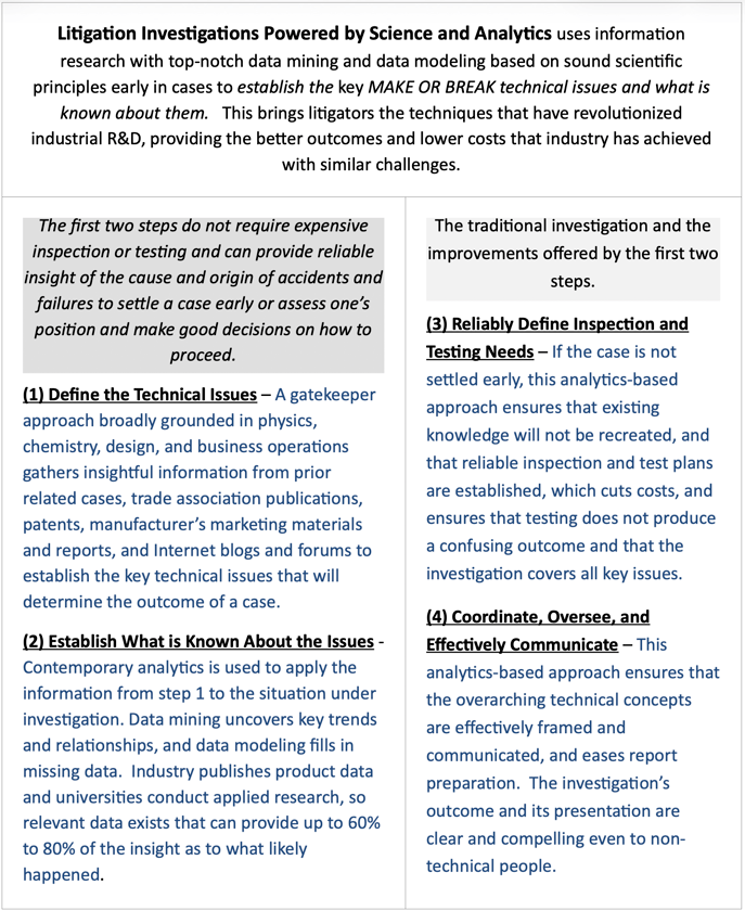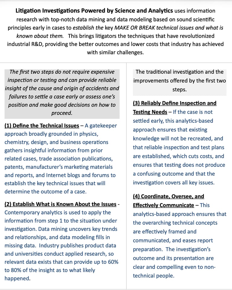 Technical Investigations, Consulting, and Expert Witness Services; Powered by Science and Analytics.