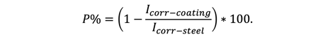 The protective efficiency, P%, of a coating is an alternative and equivalent way to convey these results. Protective efficiency is defined as: