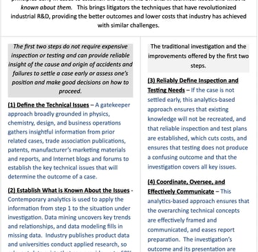 An outcome of this approach is that it places companies in an excellent position to screen claims and to achieve early resolution because this approach has already established the key issues involved. Companies can use this insight to assess who is likely to prevail, and what it will take and cost to prevail to set a reasonable basis for settlement that is supportable, authoritative, and compelling to the claimant.